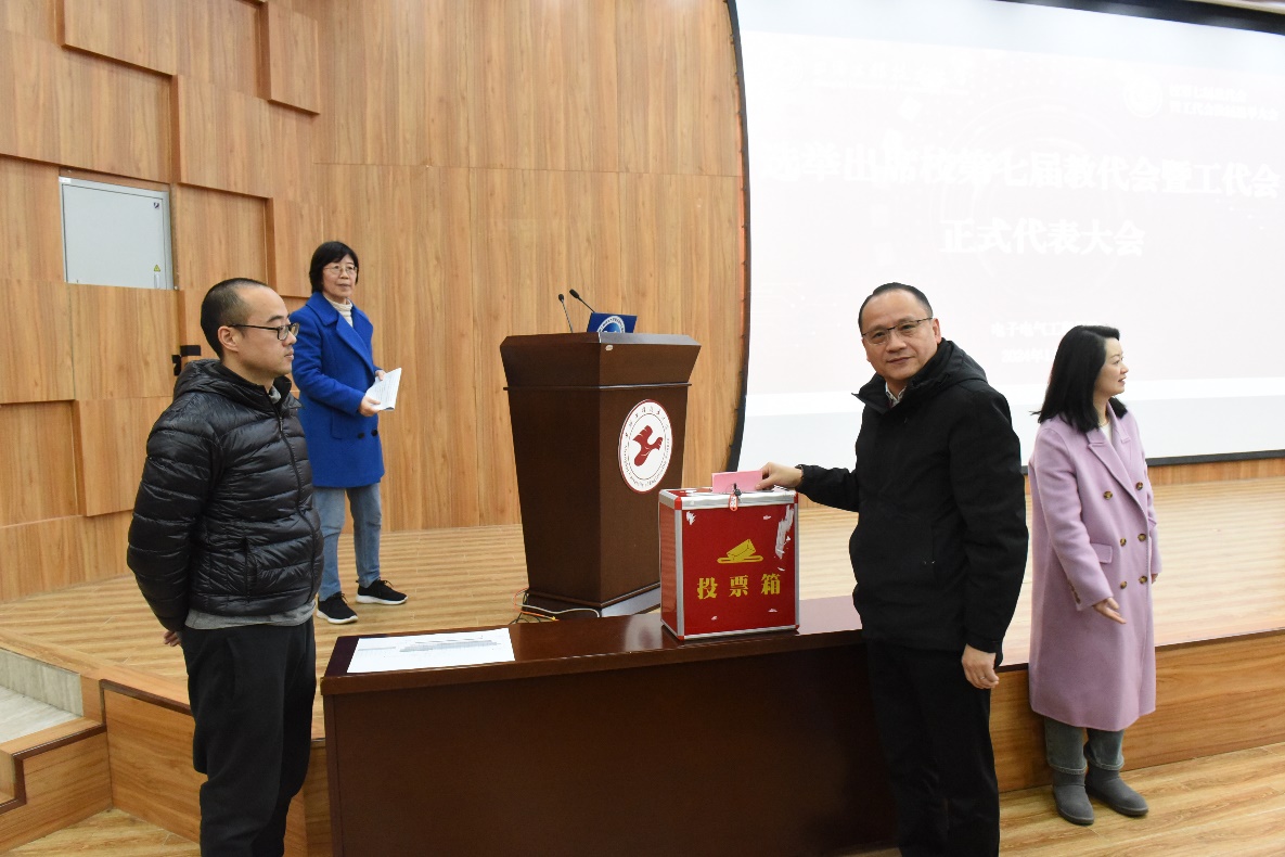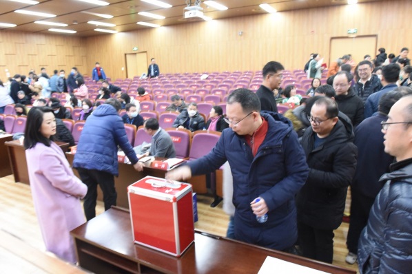 报校工会代表资格审查小组审核通过后,召开全体教职工大会对确定的16名代表候选人进行差额选举。大会通过了选举办法和监票人名单,宣读了计票人名单,并向全体教职工介绍候选人基本情况。最终全体教职工通过无记名投票,选举产生13名正式代表,其中直接从事教学、科研工作的教师(含双肩挑)有12名,占92.3%;其他行政管理人员1名,占7.7%;高职称人员11名,占84.6%;40岁以下教职工5名,占38.5%;女教职工6名,占46.2%。代表结构符合要求,选举过程严肃规范,符合程序。大会在庄严的国际歌中落下帷幕。