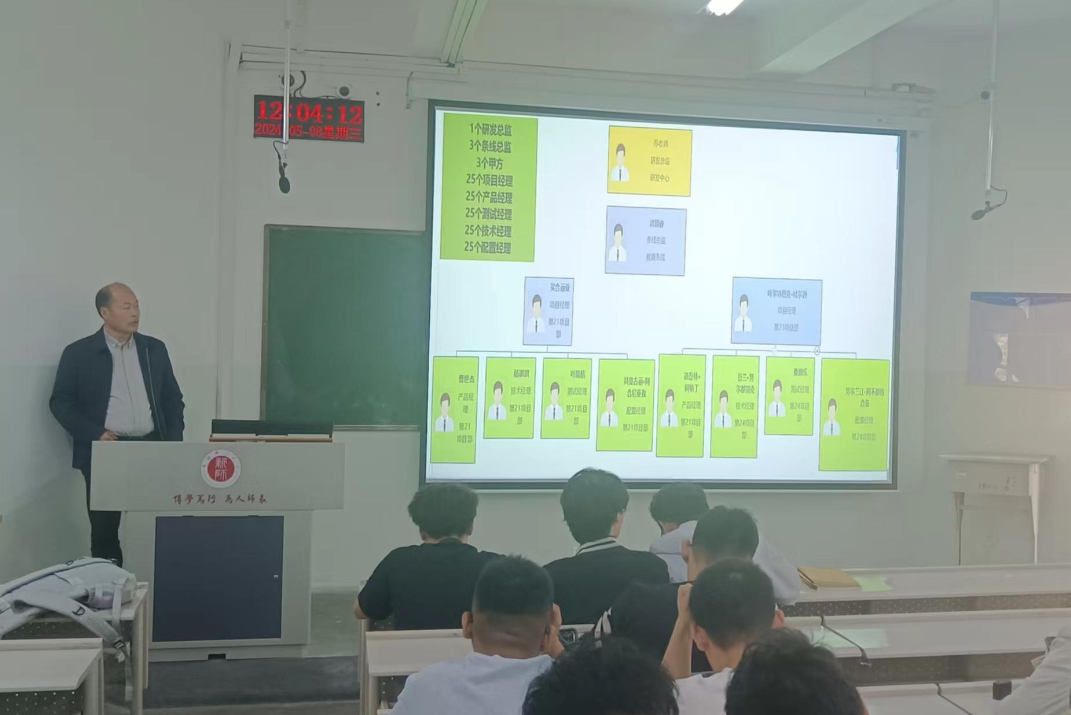 虽然本学期没有课程安排,但苏前敏副院长主动申请承担大二的软件工程课程,该课程教授的是120人的大班级,为了提升教学效果,让学生深入理解用工程化的思想进行软件的开发和维护的项目管理的理念,苏老师通过设立项目,定岗定责,将120人分成25个项目团队,对应25位项目经理,每个项目由产品经理、软件开发经理、测试经理和配置经理组成,同时为了模拟软件企业的场景,设立3位条线总监和3位甲方,在学期末进行项目验收,评选优秀经理,并发证书以作鼓励。学生开始主动思考,逐渐理解软件工程的精髓。苏前敏副院长鼓励每个同学均积极参与申报大学生创新项目,并指导学生撰写简历,为实习做准备。