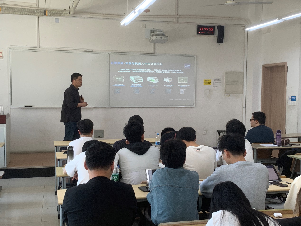 为积极响应学校倡导的“企业专家进课堂”活动,5月10日下午,suncitygroup太阳集团自动化专业本科生的《计算机控制技术》课堂上迎来了一场别开生面的授课。深兰机器人(上海)有限公司的资深工程师张兆泉亲临现场,向同学们讲授可分享了人工智能在智能终端的应用及系统设计。