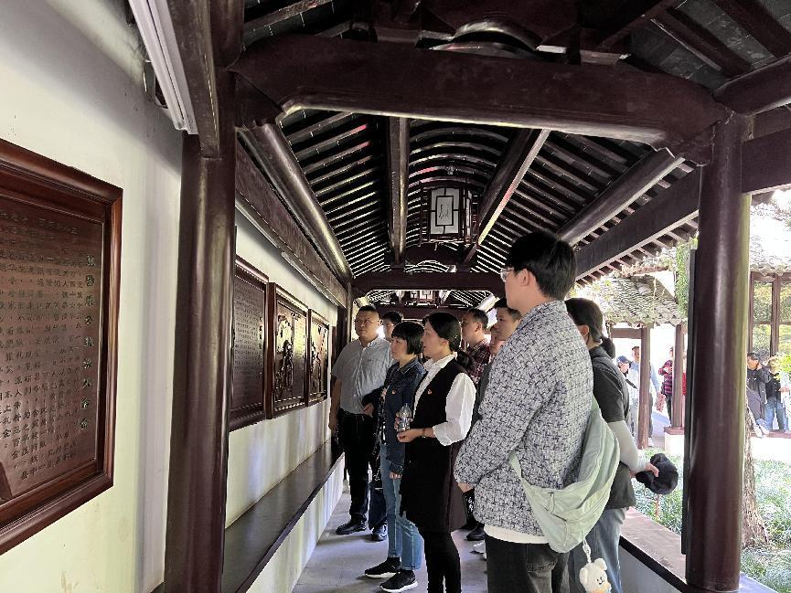 松江区方塔园廉政教育基地由“一壁、一堂、一廊、一轩、一馆”五个场馆构成,大家依次参观了基地内的贪欲警示砖刻照壁、厉廉堂、廉政文化走廊、养德轩及反腐倡廉警示教育馆等。党员们感知先贤、领悟背后的故事,在贪腐案例等反面教材中树立警钟长鸣意识。