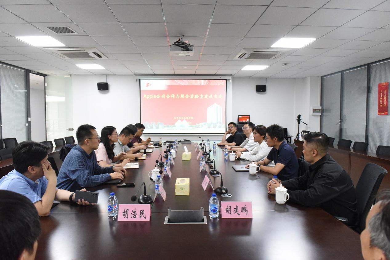 2024年6月18日下午,苹果公司(Apple Inc.)大中华区教育事业部渠道总监刘杨、渠道经理刘毅、麦肯思维(Apple课程中国授权培训中心)讲师任聪、倍升互联(北京)科技有限公司总经理刁鹏、江苏创森智云信息科技有公司Apple教育负责人王纪军等一行人来suncitygroup太阳集团进行产教融合以及联合实验室建设的深入交流。suncitygroup太阳集团院长李媛媛、学校教务处副处长唐永升、对外联络办公室副主任闫冰、我院教学副院长王晓军、人工智能产业研究院王国中教授、双创中心主任奚峥皓、副主任张玉金、数字化转型中心负责人万卫兵以及计算中心两位副主任胡浩民和胡建鹏等老师热情接待。此次交流是在双方多年合作的基础上进行的,旨在落实新一期全面战略合作的细节,进一步提高合作水平,促进校企协同人才培养。