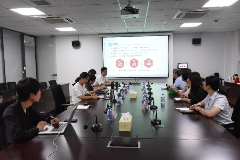 2024年6月21日,在洞泾镇综合党委专职副书记张蓉梅、洞泾人工智能发展公司总经理冯玉华的带领下,上海普览智能科技有限公司总经理张瑄、研发经理王耀庭一行来院进行产学合作交流,我院党委书记范君晖、副院长高永彬、党委委员武鹏,以及青年教师臧甲杰、吴晨谋等热情接待。