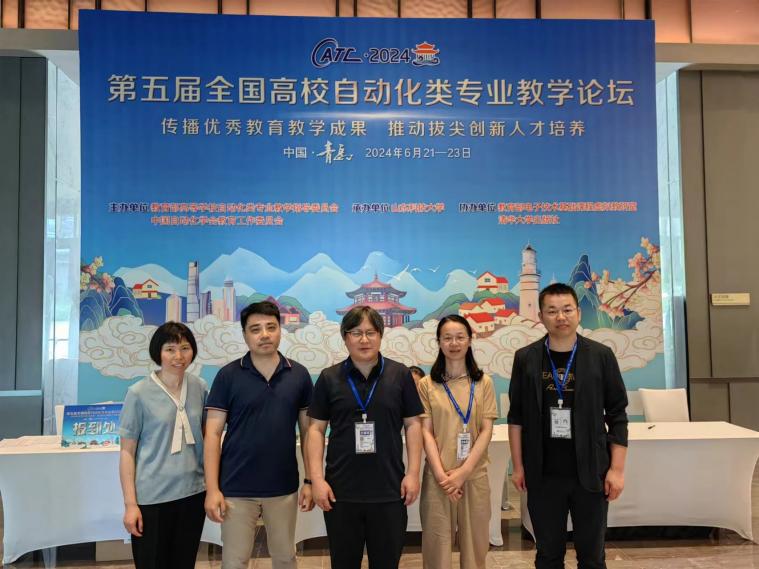 人工智能带来的新一轮科技革命和新质生产力加速演进,发展新质生产力迫切需要培养拔尖创新人才。打造适应时代需要的拔尖创新人才自主培养新体系是推进人才强国建设的需要,也是实施科教兴国战略的必然要求。为此,教育部高等学校自动化类专业教学指导委员会联合中国自动化学会教育工作委员会举办“第五届全国高校自动化类专业教学论坛”,搭建自动化类一流专业建设、一流课程建设、实践教学建设与教学成果奖交流的平台,推动自动化类专业高质量发展,为发展新质生产力贡献教育力量。会议于2024年6月21-23日在青岛市举办。suncitygroup太阳集团副院长王晓军、自动化系教师奚峥皓、胡凌燕、徐冬梅、李海波参加了此次会议。