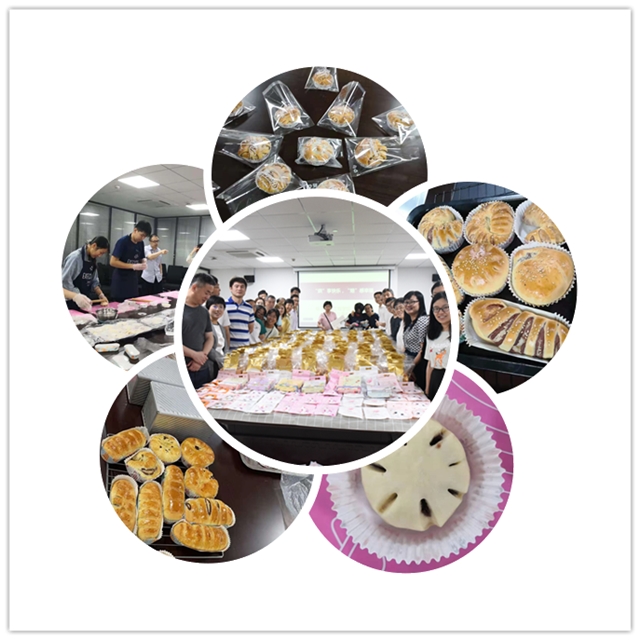活动中,刘老师悉心准备了各类点心的制作步骤与所需材料,在其专业指导下,老师们齐心协力,和面、擀面、包馅、醒发等,最后烤制。现场气氛热烈,你帮我切割,我帮你造型,每个人都化身成了创美佳人。烤箱里飘出的香味,惹人垂涎欲滴。大家互相分享,品尝着亲手制作的点心,洋溢着快乐的笑容。
