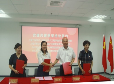 在与会人员的共同见证下,我院党委副书记、院长方志军与松江区社会工作党委副书记李杰瑜共同签署了产学合作教育基地协议。我院党委书记范君晖与上海正泰启迪智慧能源产业集群党委书记陈成剑、松江区人工智能产业集群党委副书记李曼萍、松江区集成电路产业集群党委副书记沈思情共同签署了党建共建框架协议。我院党委委员、副院长刘瑾向三家产业集群党组织授予《suncitygroup太阳集团党建联建基地》铜牌,确认建立合作关系。