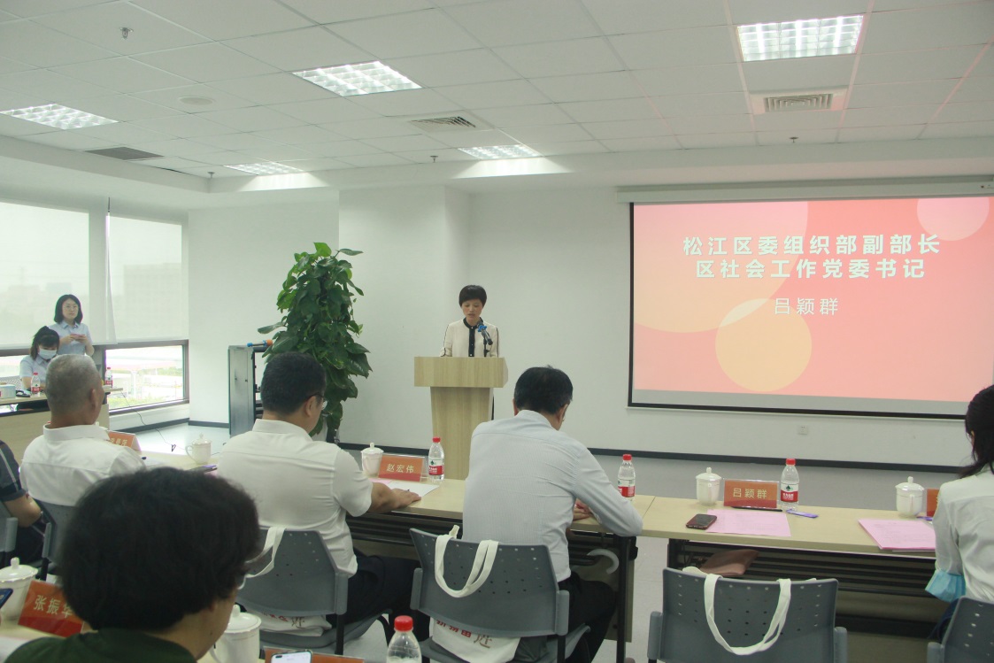 松江区委组织部副部长、区社会工作党委书记吕颖群为共建活动致辞,她提出要共享党建引领G60科创走廊建设的经验,促进多方共同发展;加强校企之间产学研合作,实现共赢;积极开展校企党建联建,实现优势互补。