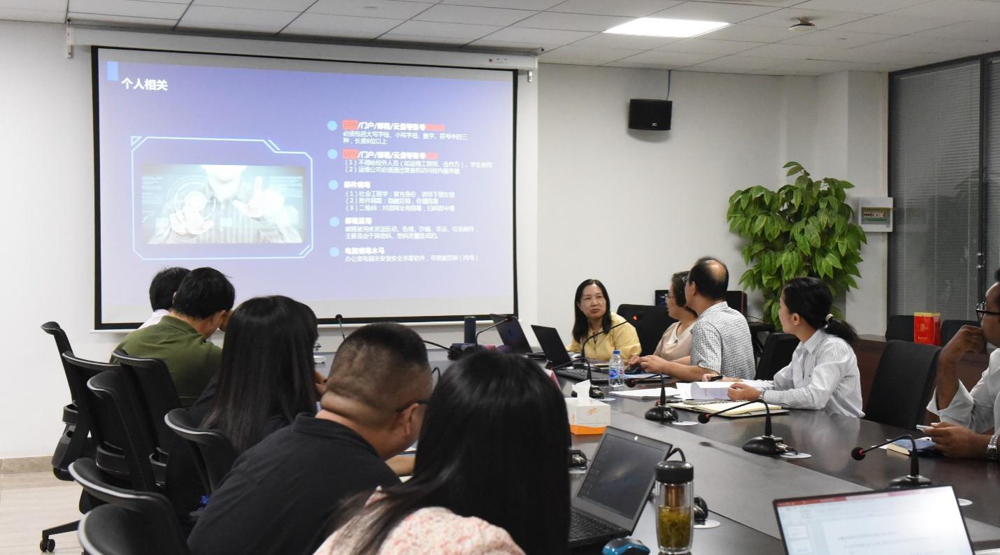 夏老师从法律依据和网络安全现状两个角度对网络安全的重要性进行了讲解,结合我校案例生动地对潜在的网络安全问题进行了阐述。在应对网络风险、保障网络安全方面,夏老师从个人相关、业务系统和运维内容三个方向对学院应部署的网络安全工作重点进行了指导。个人方面需管理好VPN、门户、邮箱、云盘等账号,做到定期更换密码、不外借账号、定期查杀木马病毒。业务系统重点强调要维护资产清单,做到落实到人、及时更新、及时注销。运维内容对网络安全维护人员的具体工作内容提出了建设性的建议和指导。