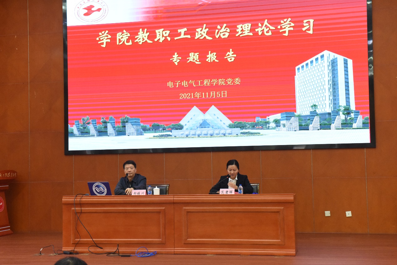 为进一步推进党史学习教育第二阶段政治理论学习的深入性、丰富性,提升师德师风建设内涵,提高党员师生政治素养,11月5日下午,我院党委在行政楼B301报告厅开展教职工政治理论学习专题报告会。会议邀请了中宣部学习强国习近平法治思想宣讲专家、上海市委讲师团党史学习教育专家宣讲团成员郝铁川教授做专题报告。学院全体教职工、研究生党员等到场聆听,会议由我院党委书记范君晖主持。