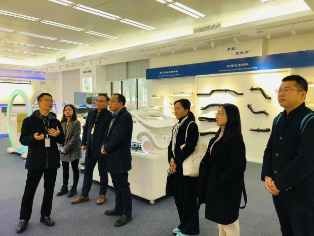 随后,在技术中心总监尹术飞的带领下,参观了保隆科技的展厅和生产线,了解了公司的核心产品和外来发展规划。