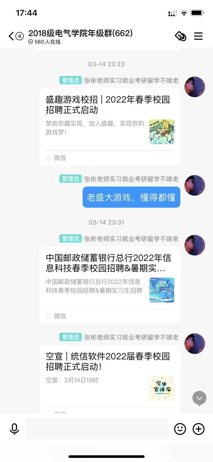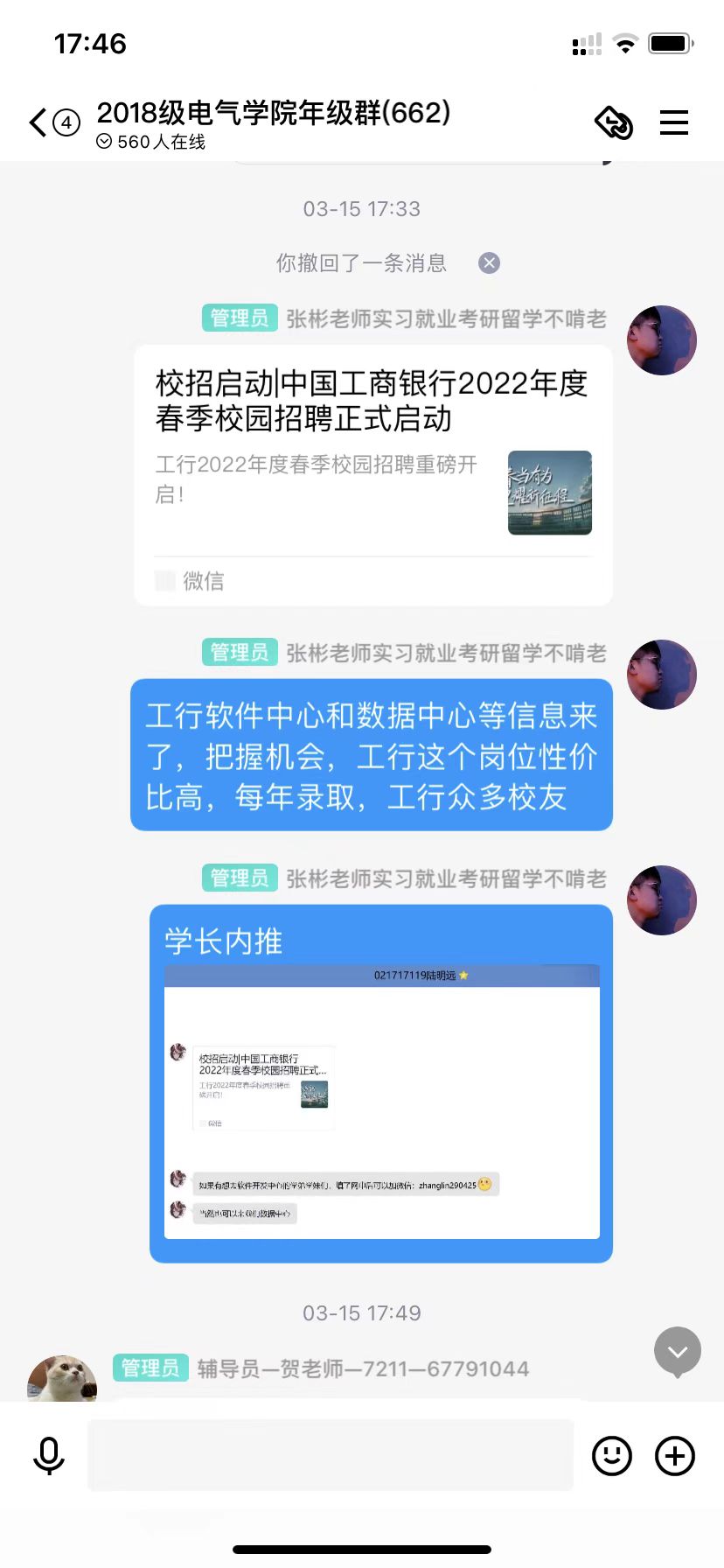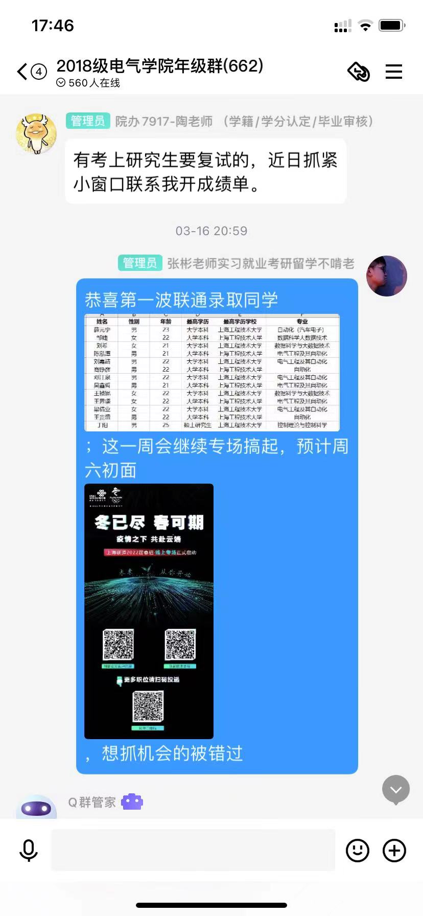 2022年3月,疫情背景下学院持续启动“云招聘”,使求职招聘、挖潜拓岗走向“云端”,奋力抢抓用好就业机遇,学院多方联系优质公司为毕业生就业搭建了更宽广、便捷的桥梁,及时组织线上招聘宣讲会,为企业和毕业生提供更便捷的线上就业宣讲指导和签约服务。截止当前,学院已经线上举办6次专业宣讲会,覆盖全部专业,确保每周年级群推送不少于20条招聘信息。