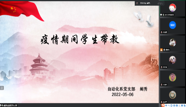 2022年5月6日,自动化系党支部通过线上腾讯会议平台开展了以“坚定必胜信心,全力打赢大上海保卫战”为主题的党日活动。会议由自动化系党支部书记奚峥皓老师主持,院长方志军同志、化工学院高分子材料与工程专业学生党支部王新燕老师和自动化系党支部全体党员参加了本次会议。