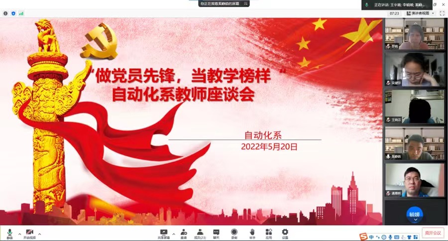 按照“教学质量月”的工作安排,自动化系于2022年5月20日通过腾讯会议平台召开了以“做党员先锋,当教学榜样”为主题的教师座谈会,会议由自动化系系主任王宇嘉老师主持,自动化系全体教师参加了会议。