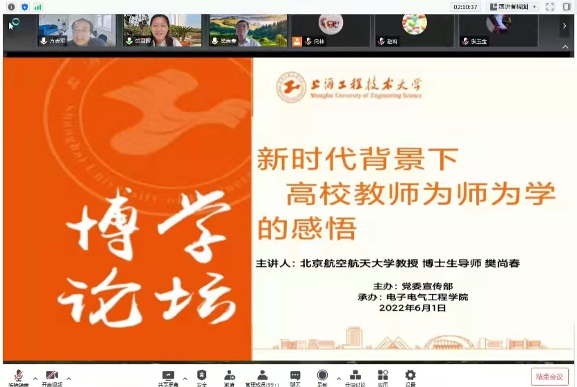 为推进“师德师风建设深化年”的工作要求,进一步加强党对学校教师工作的领导,夯实教师思想政治和师德师风建设工作基础,落实师德师风第一标准,6月1日下午,学院教师发展分中心在线上开展师德师风教育,特邀北京市教学名师、北京航空航天大学教授樊尚春做客我校博学论坛,给全体教职工作题为《新时代背景下高校教师为师为学的感悟》专题报告。学院全体教师和部分其他学院教师参加了会议。会议由我院党委书记范君晖主持。
