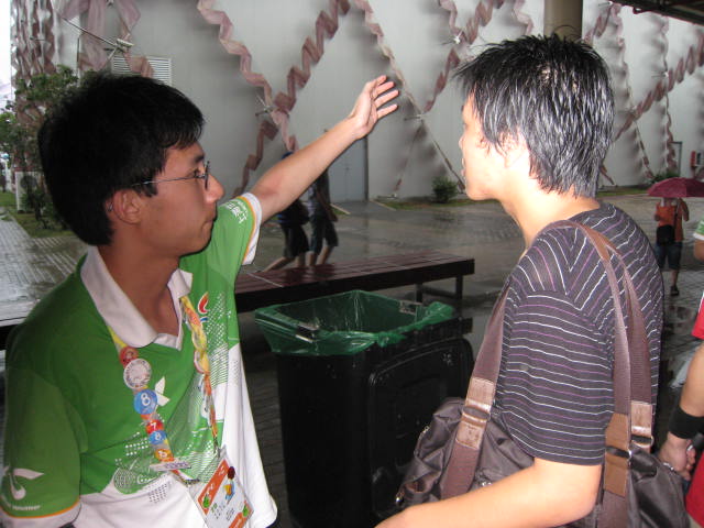 暴雨初露端倪,AB片区总指挥部已经下令让所有分布在交通站点及路口岗点的志愿者撤离至岗位附近安全地点避雨,同时,我院小白菜正从五号入口走入园区。风雨已经开始让游客招架不住,甚至有游客追着雨伞跑的,大家都冲向遮阳伞等处躲雨,并逐渐群聚起来。此时,“电气雄鹰”小组的组长赵寅同学意识到雷电可能危害游客的人身安全,随即立刻组织小组成员冲向聚集的人群里,大家分散开来,面带微笑地主动询问游客是否需要帮助,引导游客有序地撤离至高架布道下避雨,一边耐心地安抚游客的情绪。片刻后,在“电气雄鹰”小组共同的努力下,游客已三三两两散开,使群聚的情况逐渐恢复正常。 打雷、闪电、暴雨可以让很多人为之一颤,“电气雄鹰”小组却冷静对待,充分发挥团队凝聚力和对事件的敏感度,急游客之所急,想游客之所想,感动着游客的同时,也为身边的志愿者作出了典范。 |