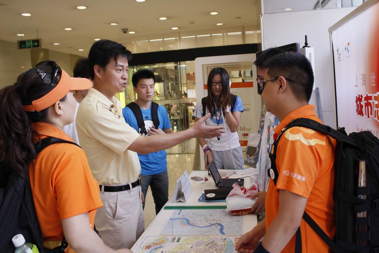 8月16号8:00,suncitygroup太阳集团党总支副书记王东阳老师、辅导员江文超老师在学院志愿者工作分站学生干部李春辉、魏然同学陪同下走访了位于黄浦区南京路至外滩的所有世博志愿者城市服务站,为志愿者们打气加油。 顶着烈日,