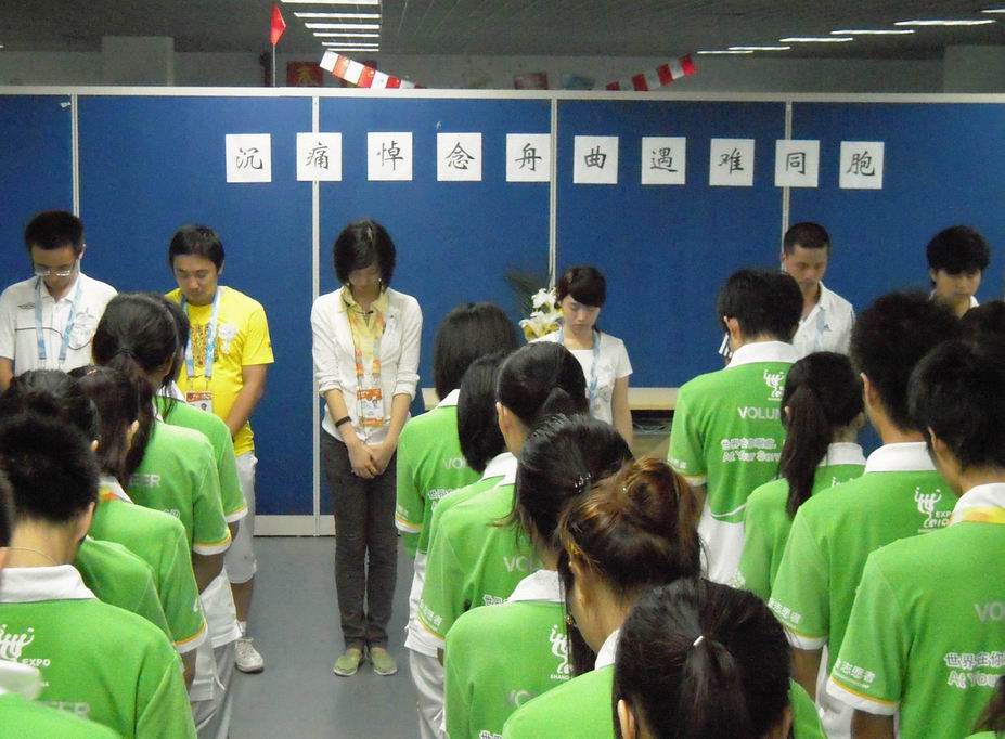 8月7日甘肃省舟曲发生特大泥石流,舟曲人民的生命及财产遭受严重创伤。据甘肃舟曲抗洪抢险指挥部14日下午最新通报,截至8月14日16时,舟曲特大山洪泥石流灾害遇难人数上升为1239人,失踪人数为505人。 秀美山川现已满目疮痍,转瞬之间生命阴阳相隔。可是,灾难无情,人间有爱!8月15日下午在世博园AB片区300多名志愿者集体参与了哀悼仪式,为遇难同胞默哀,为舟曲祈福。 在AB片区轮值主管刘婧峥老师主持下,AB片区志愿者低头默哀一分钟。随后,大家鱼贯向前献出别在胸前的小白花。朵朵白花静静地摆满了哀悼台,代表了每位世博志愿者对甘肃省遇难同胞的深深悼念以及对舟曲人民深切的祝福。 全国上下,心系舟曲。阴天里,整个世博园都沉浸在为舟曲悼念的悲痛氛围中。AB片区每位志愿者化悲痛为力量,在以更加饱满地热情服务世博的同时,大家衷心地希望舟曲人民早日走出泥石流的阴影,愈合心灵的创伤,重建幸福家园。