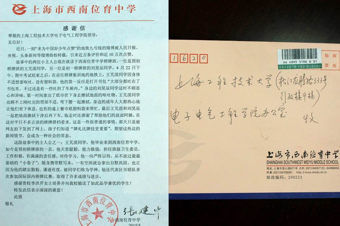 5月12日,suncitygroup太阳集团收到上海西南位育中学寄来的一封感谢信,信中对学院李洪芹老师育子有方、为学校培养了优秀的小孩表示了深深的谢意。