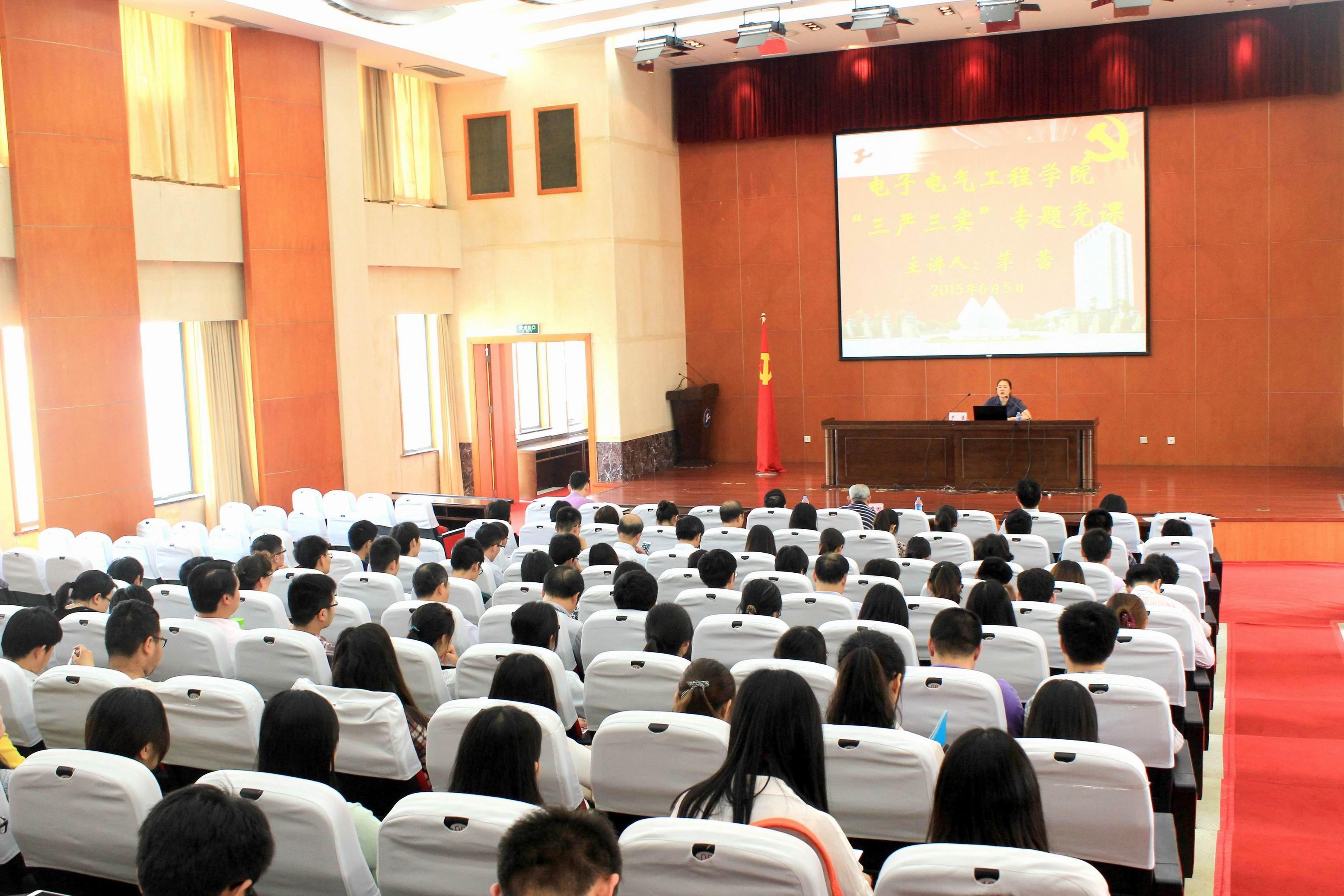 6月5日下午,suncitygroup太阳集团在行政楼B301开展“三严三实”专题教育,全体教工党员和学生正式党员汇聚一堂,共同聆听我院党委书记茅蕾作的专题党课。