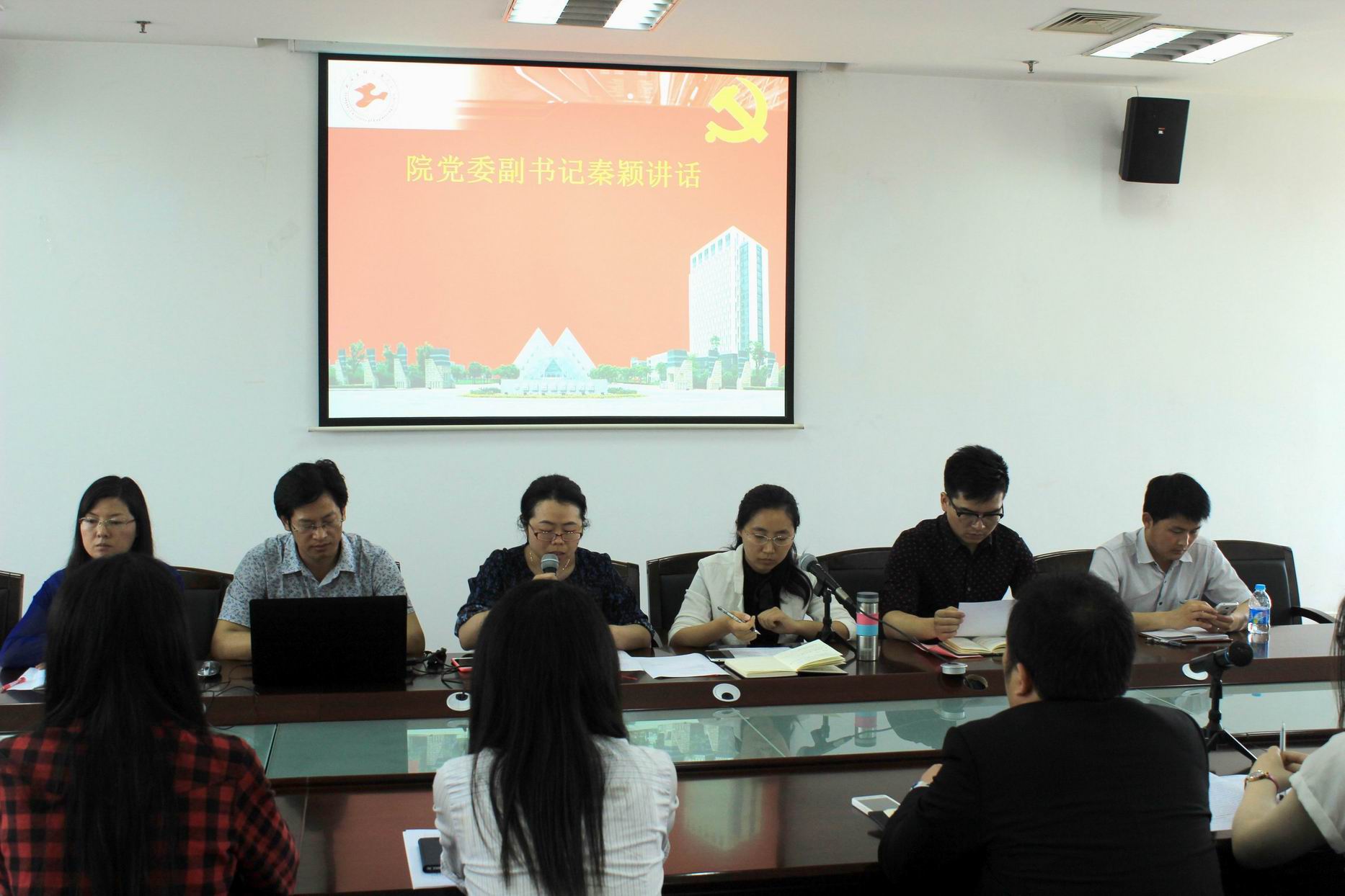 最后,学院党委副书记秦颖老师发言,对全体毕业生党员提出了几点期望,希望大家增强党员意识,不负组织期望;坚持不断学习,争创一流业绩;正确对待利益,保持清正廉洁;接受教育管理,加强党性修养;并带头做一个感恩的人,文明离校。她要求大家认真学习领会当前“三严三实”的精神内涵,兴严实之风,走好人生第一步。