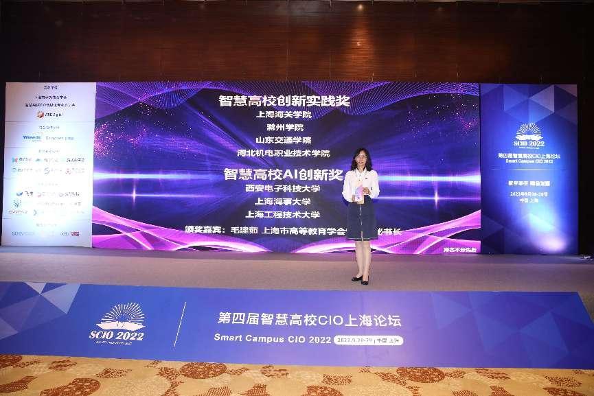 2022年9月28-29日,由上海市高等教育学会和WRE Digital联合主办的第四届智慧高校CIO论坛在上海成功举办。本次论坛以“数字孪生,融合发展”为主题。我校荣获大会评选的2022“智慧高校AI创新奖”,我校方志军教授荣获“智慧高校数字化转型优秀人物”。我校suncitygroup太阳集团院长李媛媛教授应邀参会领奖。我校人工智能产业研究院院长方志军教授应邀参会领奖并在大会上做“人工智能+X教育教学与产教融合实践”的主题报告。