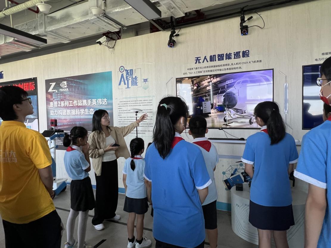随后附校师生跟随学院师生来到学院5G+人工智能应用联合创新实验室参观。实验室基于校园场景持续深入地开展了5G+智慧教室、智慧课堂应用、校园融媒体信息发布平台、校园智能监控、远程驾驶等等方面的研究。学生们对于人工智能在各领域的应用惊叹不已,全程专心致志地听讲解、学知识,积极参与到实验室内各项目互动体验中,气氛十分热烈。走出实验室纷纷表示一定要好好学习,肩负起科技强国的青年使命。