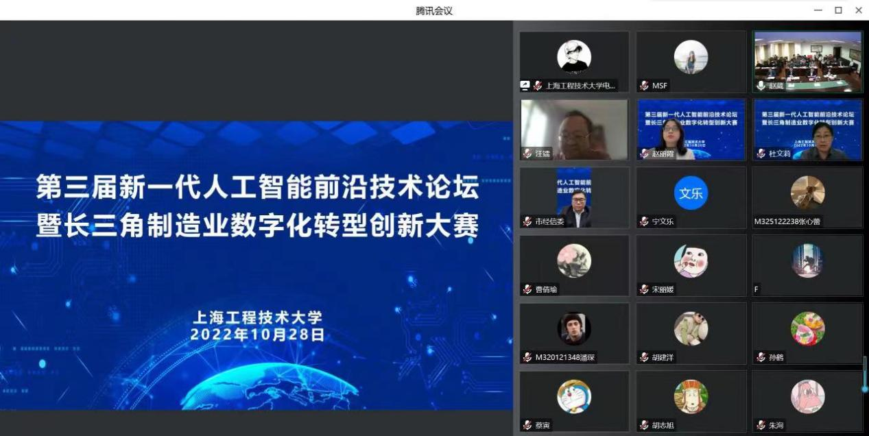 为推进我校5G+人工智能产业学院建设,汇聚人工智能领域的广大教育工作者及工业界同行,共同分享最新理论和技术成果,为人工智能的创新发展和跨界应用注入新动能,培养更多优秀的人工智能领域复合型人才,2022年10月28日,第三届新一代人工智能前沿技术论坛暨长三角制造业数字化转型创新大赛在上海工程技术大学行政楼506会议室,通过线上线下同步的形式成功举办。