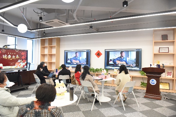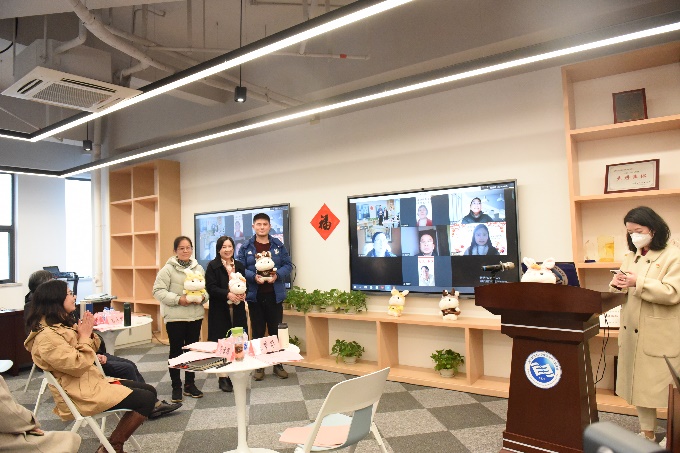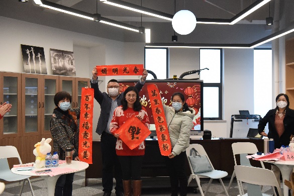 同时,值此新春即将到来之际,为进一步凝心聚力,特举行“辞旧迎新描锦绣 继往开来绘蓝图”联欢活动。学院各系室及教师代表通过独唱、合唱、诗朗诵等形式为全体教职工带来了精彩的欢庆节目。活动间隙,我院党委书记范君晖为12位“本命福兔”教师送吉祥兔、院长李媛媛为老师们送“福”和新春对联。