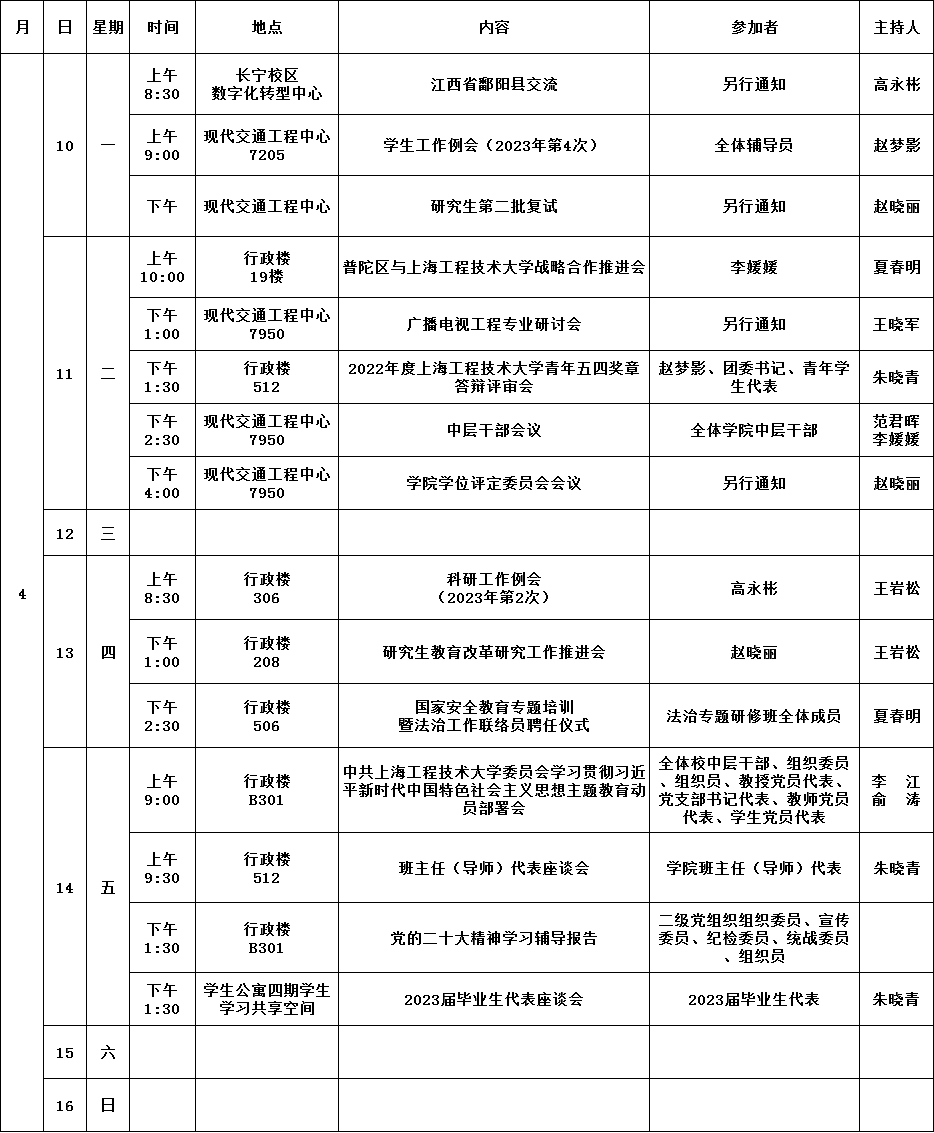 学院第8周活动安排(2023年4月10日-2023年4月16日)