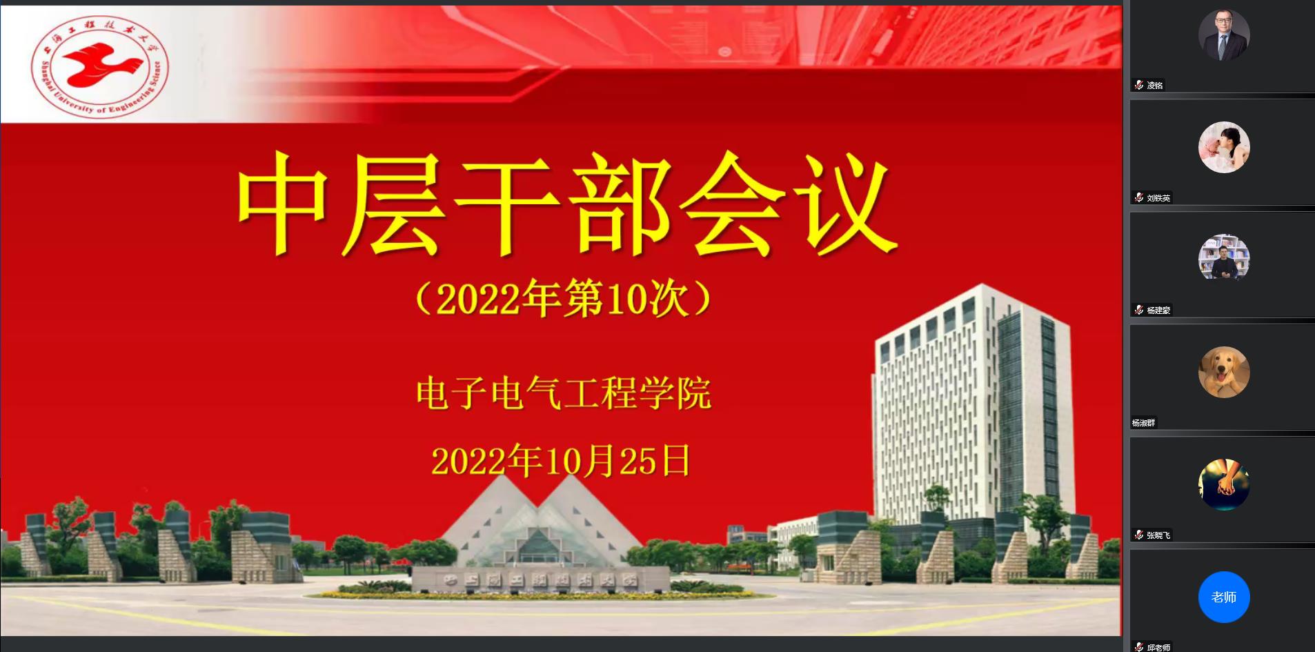 10月25日下午,我院党委通过线上形式召开学院中层干部会议。会议由院长李媛媛主持,我院党委委员、党政领导、全体中层干部参加会议。