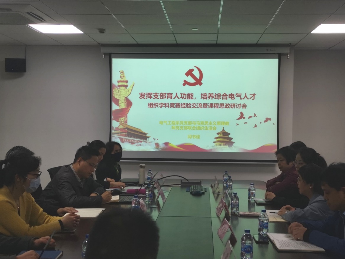 4月21日,学院电气工程系党支部与马克思主义学院马克思主义原理教师党支部在松江校区现代交通工程中心7850会议室联合举办“发挥支部育人功能,培育综合电气人才”主题党日活动,“国家精品在线开放课程”主持人彭兴伟老师出席。本次党日活动立足学习贯彻习近平新时代中国特色社会主义思想主题教育,以提升学科竞赛水平和推进电气类专业课程思政建设为主旨,采用经验交流与研讨的形式进行。