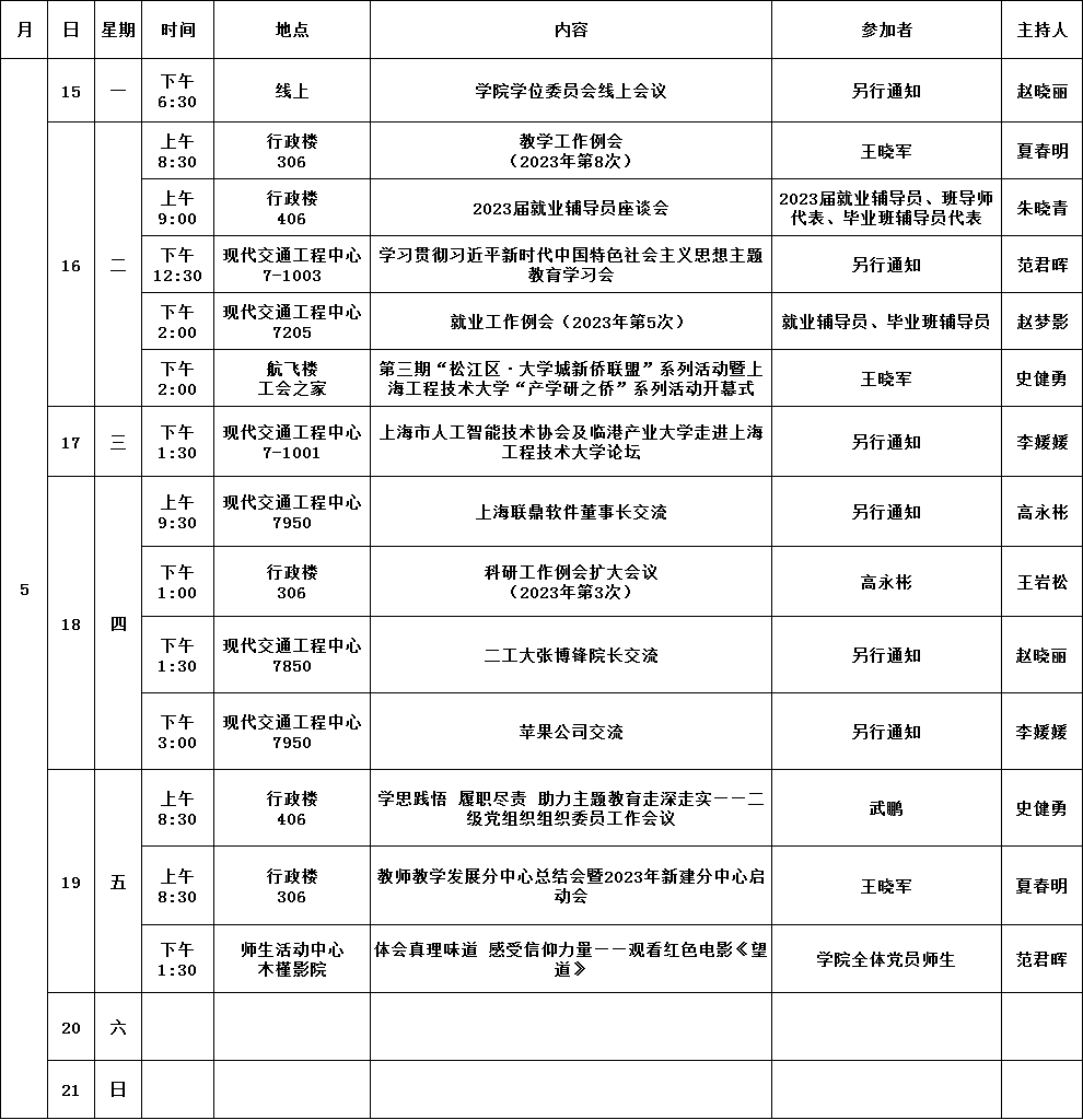 学院第13周活动安排(2023年5月15日-2023年5月21日)