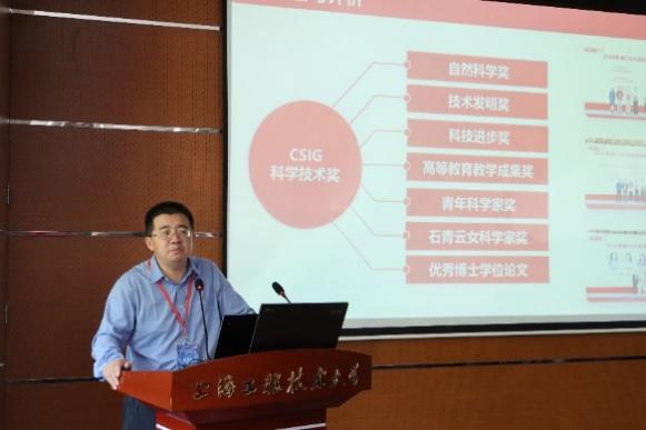 2023年6月2日在上海工程技术大学航飞楼一楼报告厅召开了CSIG图像图形中国行—上海工程技术大学,暨科技部科技创新2030新一代人工智能重大项目研讨会。本次活动由中国图象图形学学会(简称CSIG)、上海工程技术大学主办,suncitygroup太阳集团,东华大学计算机科学与技术学院,上海市数据智能技术及其应用协同创新中心共同承办。大会交流主题为“多媒体智能”。上海工程技术大学校长俞涛教授代表学校对各位专家的莅临表示欢迎,俞校长希望通过各位专家的精心指导进一步加强校际之间的深度合作,发挥专家智库的作用,不断提升我校在人工智能领域的影响力。