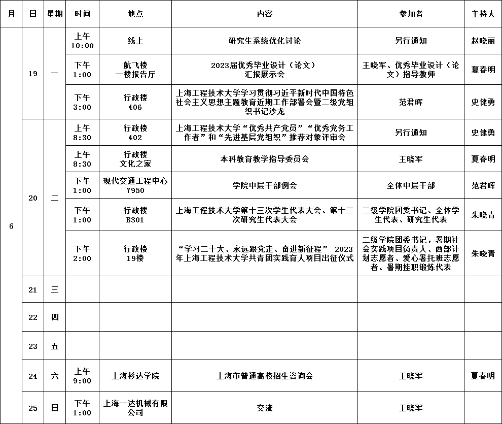 学院第18周活动安排(2023年6月19日-2023年6月25日)