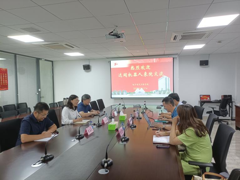 7月27日下午,达闼机器人股份有限公司总监吴新明、经理王鑫元、经理肖雯静一行来院调研交流。学院院长李媛媛、副院长王晓军、自动化系副主任李海波参加交流会。会议由学院院长李媛媛主持。