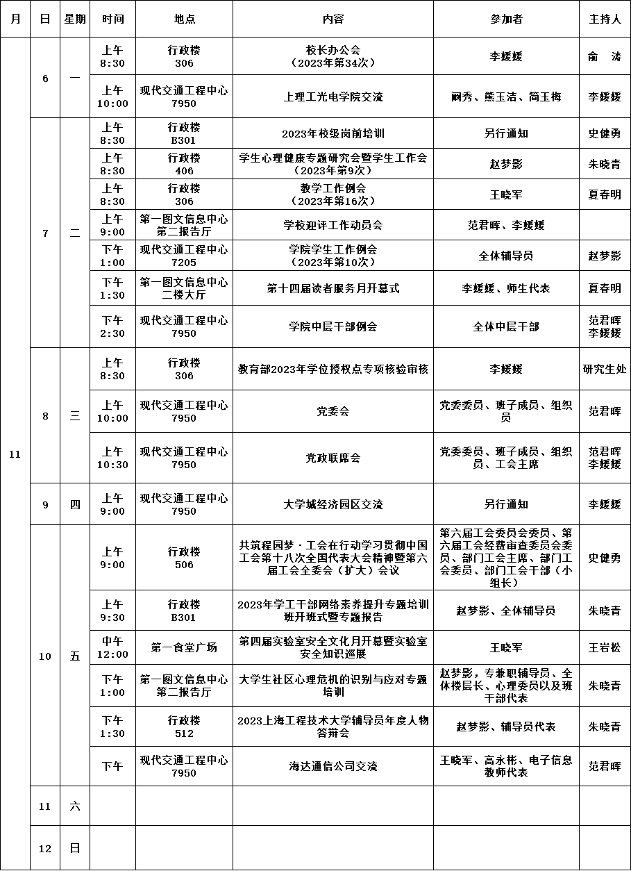 学院第9周活动安排(2023年11月6日-2023年11月12日)