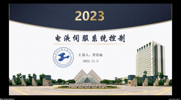 曹倩瑜硕士的报告围绕“电液伺服系统”展开。她生动地解释了电液伺服系统在工程领域中的广泛应用,并深入介绍了她的研究所涉及的技术难题。曹硕士在报告中展示了对电液伺服系统进行优化和改进的研究成果,引起了与会同学的极大兴趣。