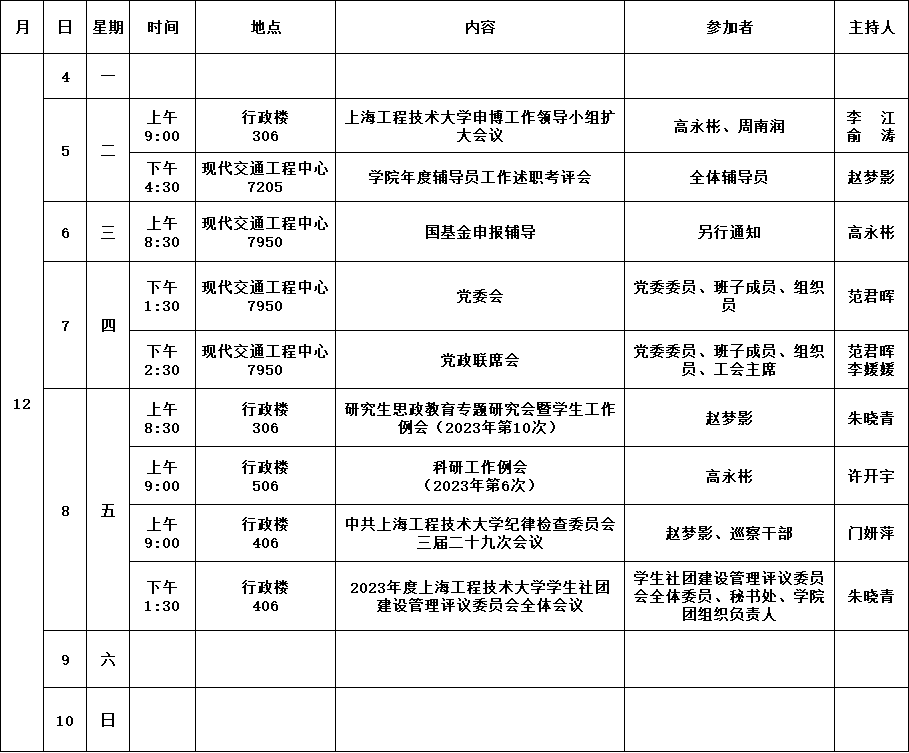 学院第13周活动安排(2023年12月4日-2023年12月10日)
