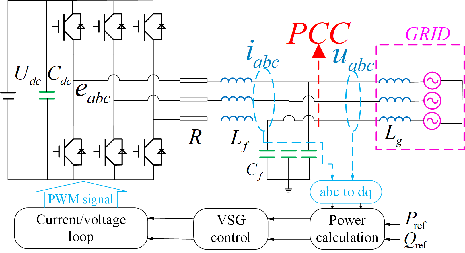 随着能源危机和环境污染问题日益凸显,以光伏、风电等清洁能源为主要发电形式的微电网技术快速发展,在微电网中,分布式发电单元通过并网逆变器连入电网,而并网逆变器具有控制灵活,响应速度快的特点,但缺乏惯量支撑,也无法为微电网提供阻尼。VSG(virtual synchronous generator)技术可以模拟同步发电机的惯性和阻尼特性使并网逆变器模拟同步发电机具有的转动惯量和阻尼特性。