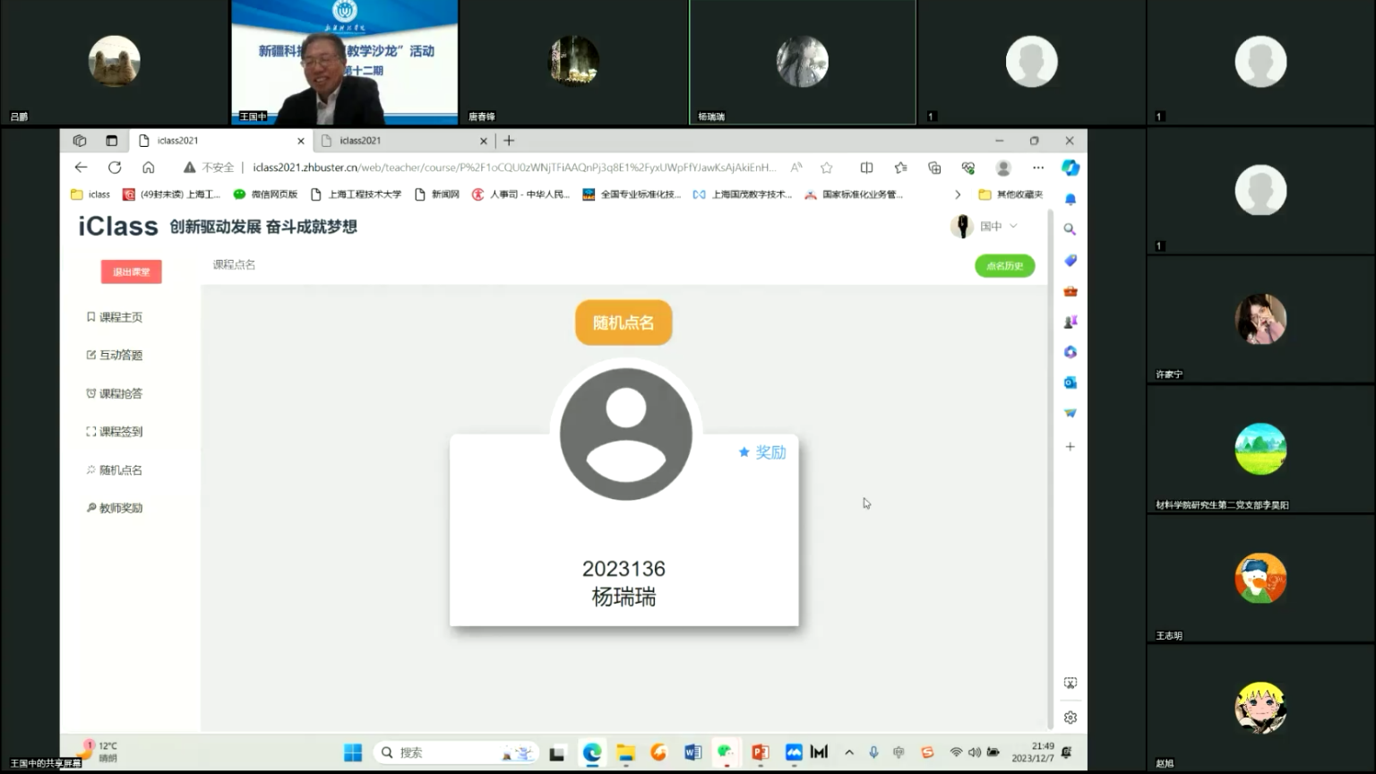 王教授结合自身经历和创新实践过程,详细介绍了数字赋能教学研究成果在教学中的应用转化、数字经济新基建及数字技术赋能教育教学改革的理念、方法和实践等内容。并通过运用王教授科技创新成果反哺教育成果——ICALSS智慧教学系统现场分享案例及互动环节探讨了如何培养个人的创新意识和能力,如何将创新精神、劳模精神、工匠精神和调查研究应用于创新实践中。