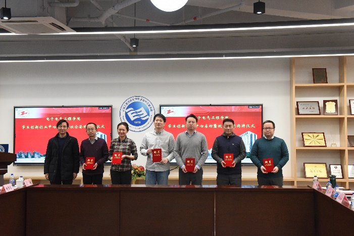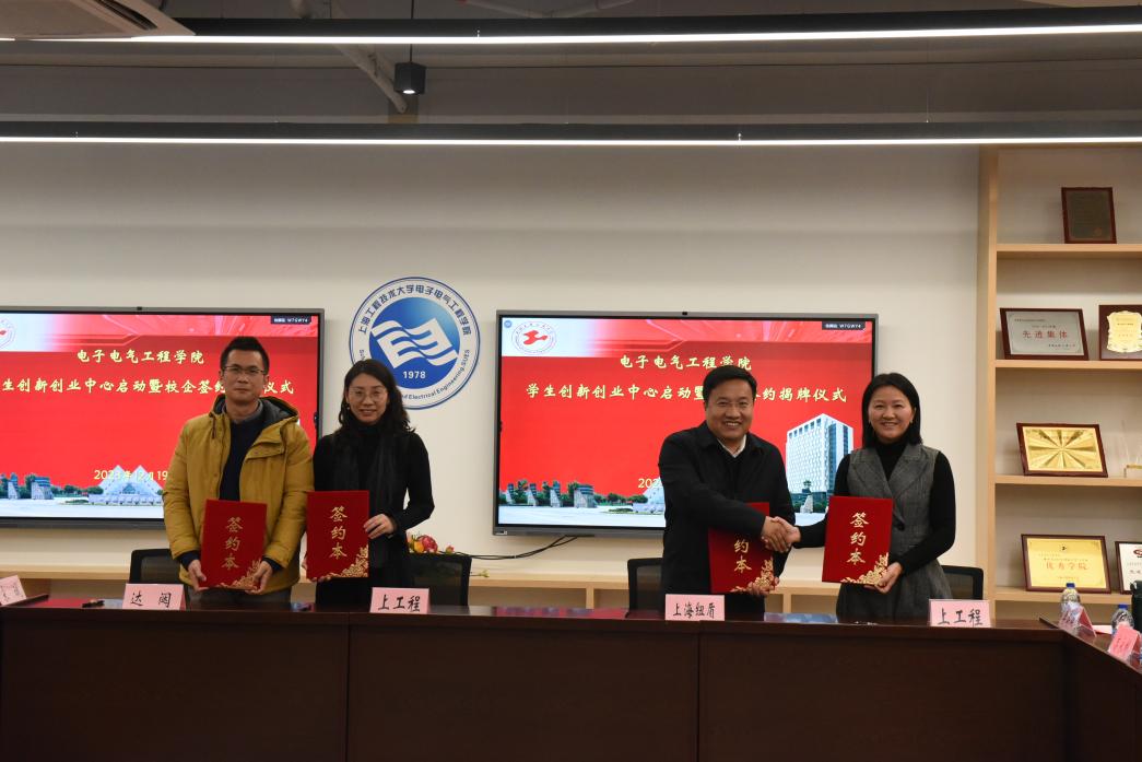 在夏春明副校长的见证下,我院和上海纽盾以及达闼机器人分别签署了战略合作协议,教务处饶品华处长和工训中心主任、创新创业学院陈浩院长共同为suncitygroup太阳集团双创中心揭牌,范君晖书记和纽盾董事长杨腾霄为联合实验室揭牌,李媛媛院长和达闼机器人总监吴新明为校外实习基地揭牌。随后,高永彬副院长为双创中心首批校外指导专家颁发聘任证书。